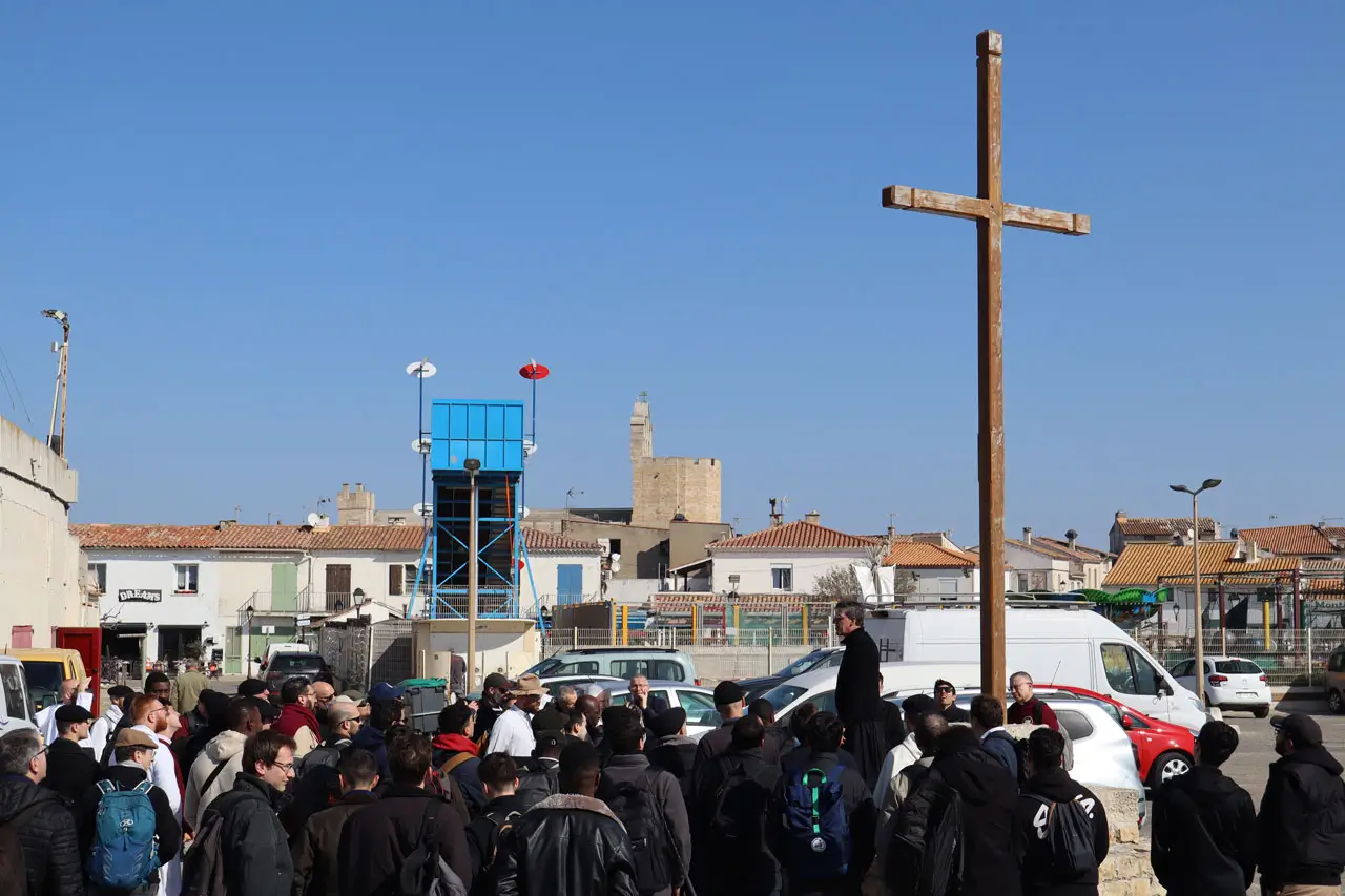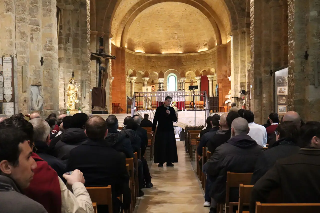 Le curé-recteur de la paroisse du village, don Emmanuel Lemière, nous a chaleureusement accueillis à la toute nouvelle Maison des Pèlerins et des Paroissiens. Il nous a accompagnés tout au long de la journée, nous faisant découvrir la riche tradition de ce lieu où, selon la tradition, l’évangélisation de la France aurait commencé. Mgr Delarbre, évêque d’Aix-en-Provence et Arles, était également présent pour présider la célébration eucharistique en cette solennité.